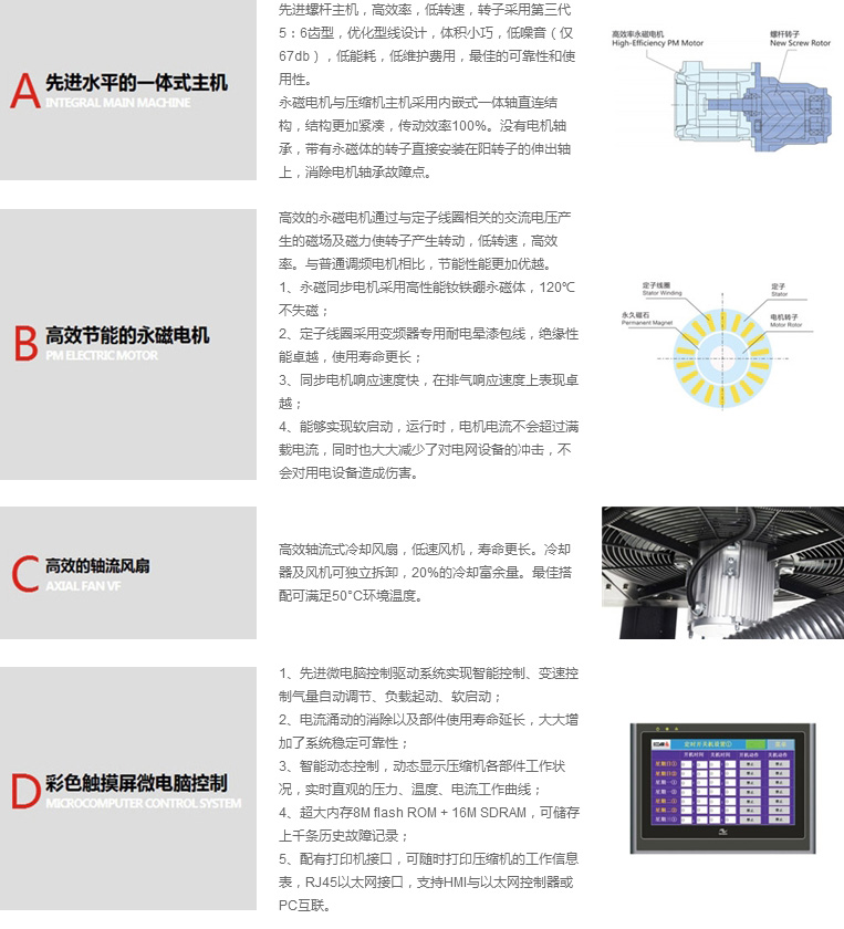 艾高EPM永磁變頻雙螺桿空壓機(jī)系列,獲得國家認(rèn)證節(jié)能減排產(chǎn)品,實(shí)測節(jié)能30%以上;通過ISO9001:2008國際質(zhì)量管理體系認(rèn)證產(chǎn)品。國際節(jié)能減排和新能源產(chǎn)業(yè)博覽會“節(jié)能減排優(yōu)秀獎”